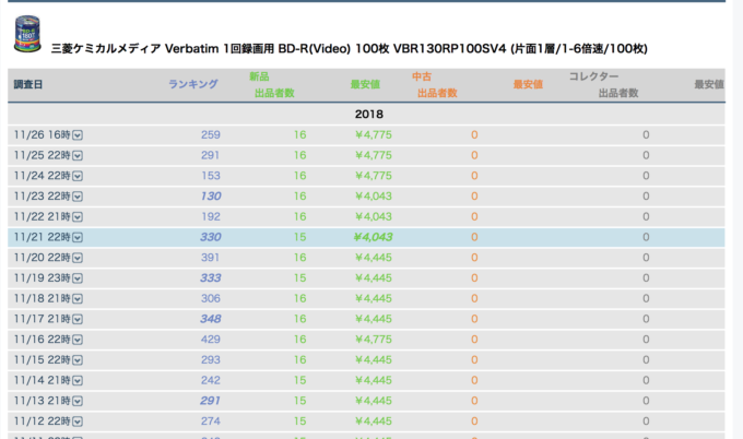 その結果、4050円よりも安い方法を見つけた。2019年10月現在、「Nojima Online」で買えば4280円切った値段でBlu-rayを100枚買うことができる。