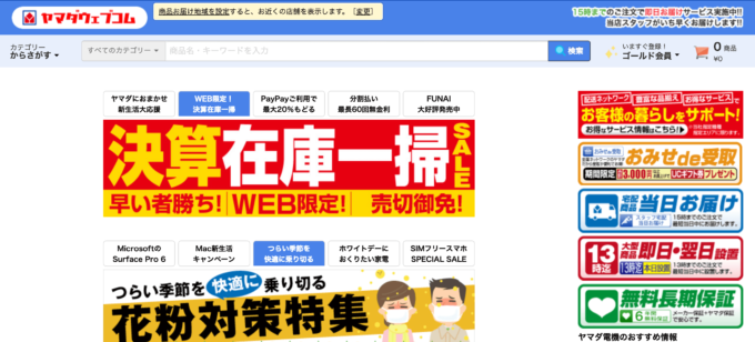 ヤマダはオンラインショッピングもやっていて、そこでもポイントを使うことができる。サイトを見てみるとヤマダ電機に行くよりもめちゃくちゃ選択肢が広がってびっくり。ヤマダ電機に行ったけど欲しいものなかった......。って方はぜひともサイトに行ってみてください。