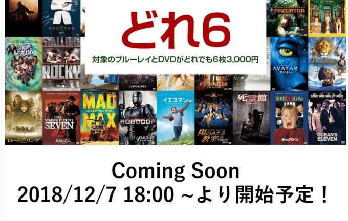DVD、Blu-ray6枚3000円セール「どれ6」