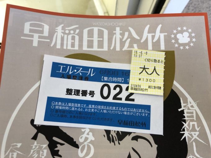 作品と作品の間に10分の休憩があって、その間に入っていくスタイル。チケットは発券機で購入したあと、ロビーに見せて整理券と交換してもらう。そして、上映前10分に整理券順に入場といったスタイル。