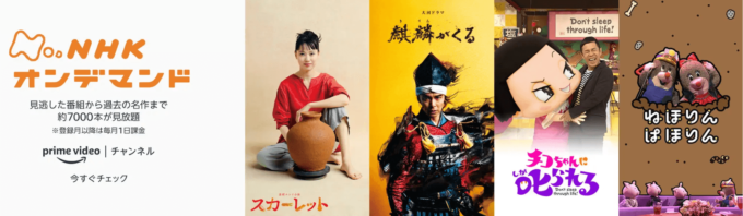 例えば、代表的なプライム・ビデオ・チャンネルに、NHKオンデマンドがある。