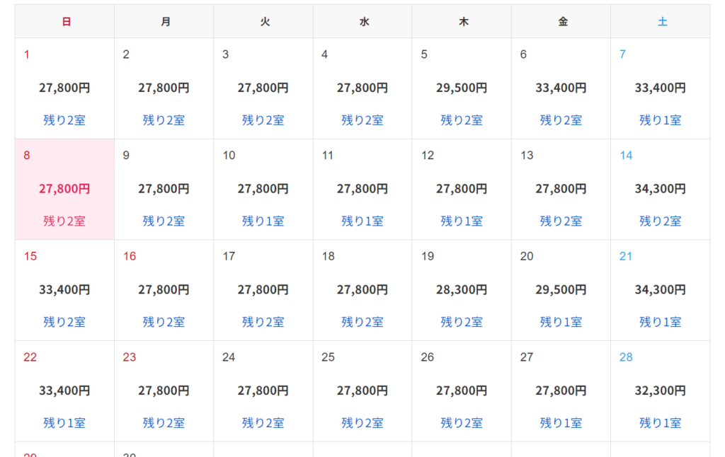ホテルパックの予約ページから価格を調べてみると